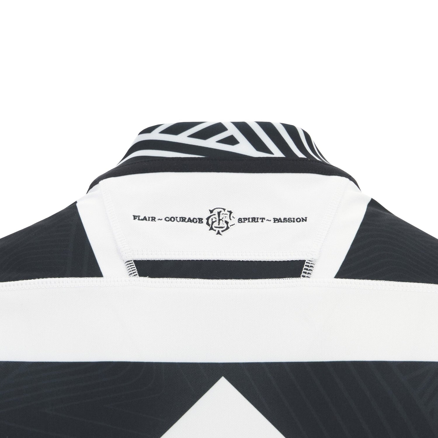 Embroidered Barbarians logo with 'Flair-Courage-Spirit-Passion' on the back nape of neck
