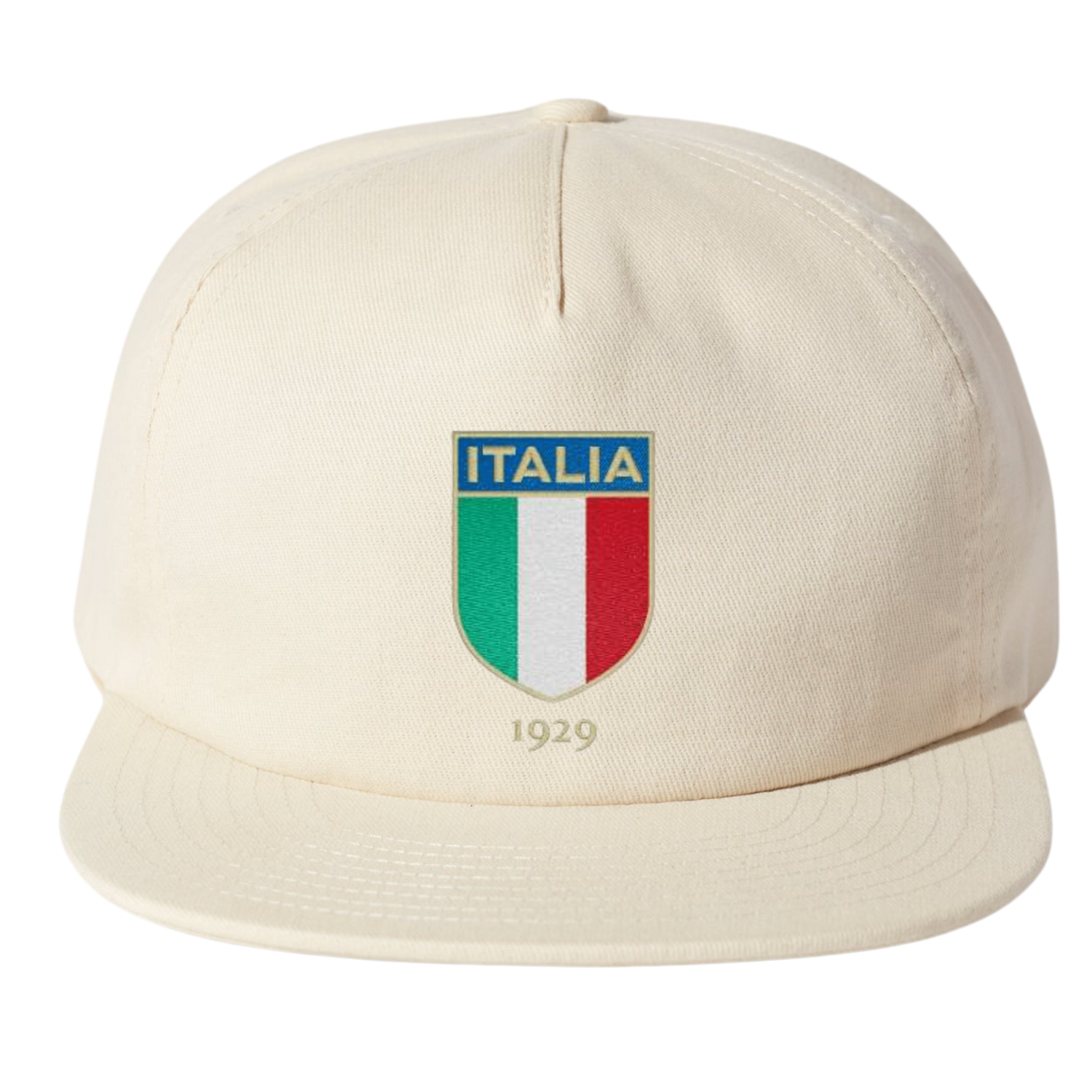 The Italy Cap is made from 100% brushed cotton twill fabric, featuring a 5-panel crown and a mesh liner for added comfort. It has an adjustable plastic snapback closure for a customizable fit (one size fits most, 58 cm), with a deeper fit than a standard dad cap. The brim arrives flat but can be curved to your preference. It showcases an embroidered vintage design as part of the Nations of Rugby Classics Collection.