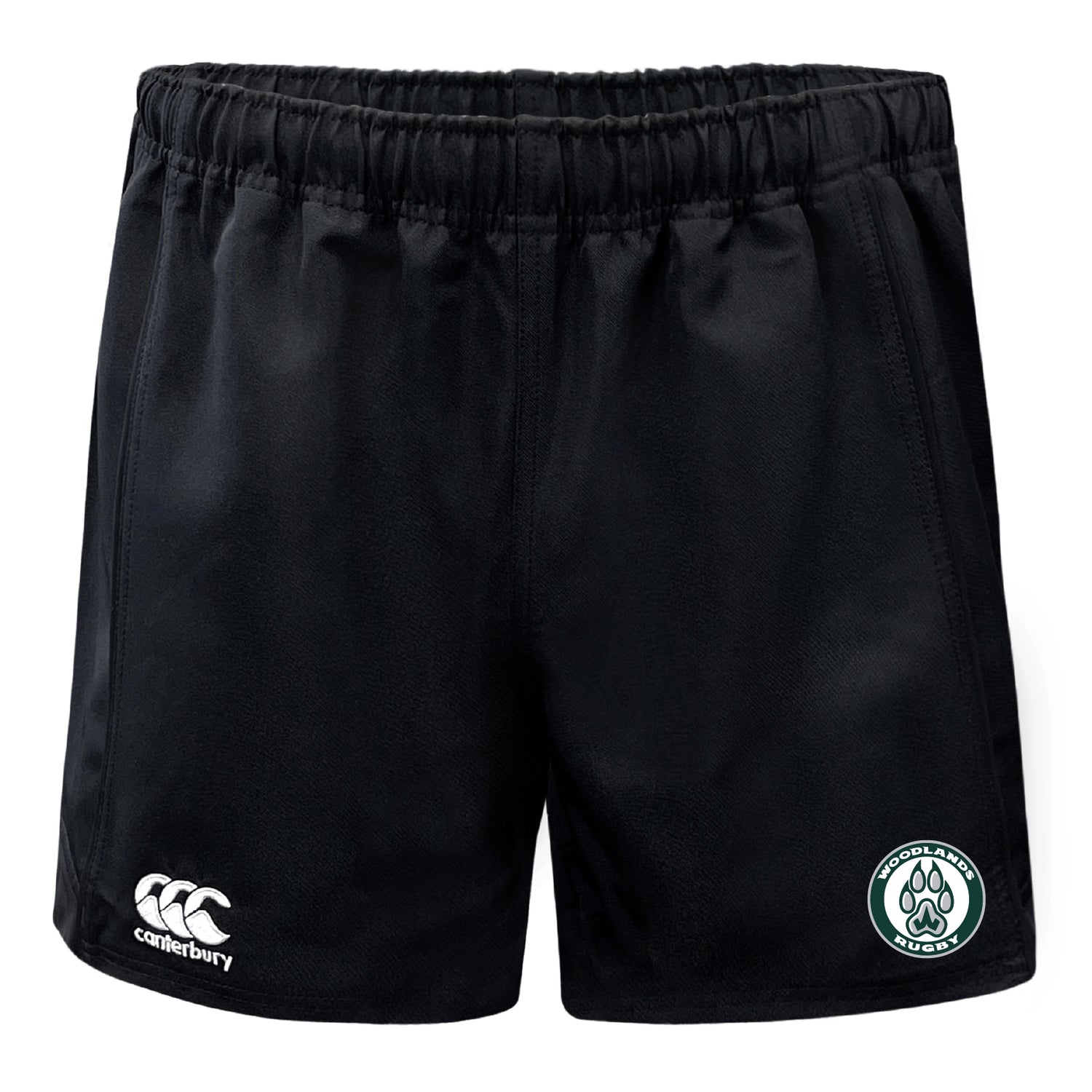 Embroidered Canterbury logo on bottom of front right leg